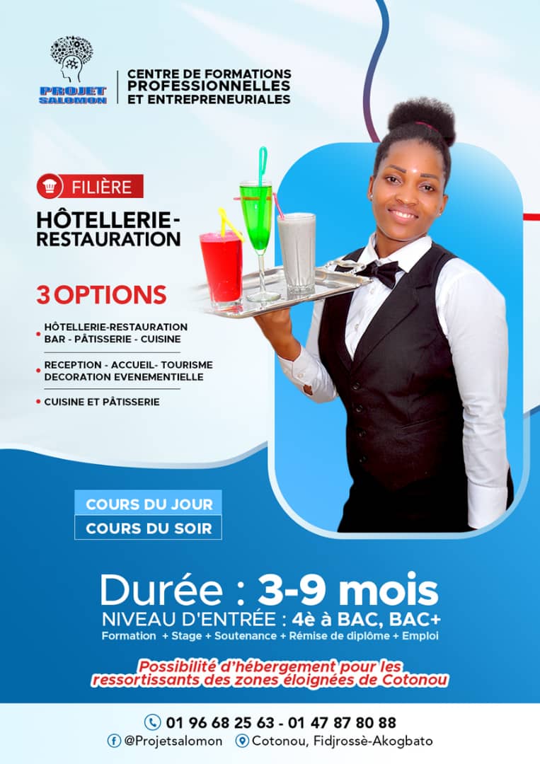 🎓🎓🎓🎓🎓🎓🎓🎓Vous avez le niveau de 4e, 3e, BEPC ou BAC et vous désirez vous faire former en HÔTELLERIE RESTAURATION et avoir votre attestation et vos diplômes, plus de soucis.