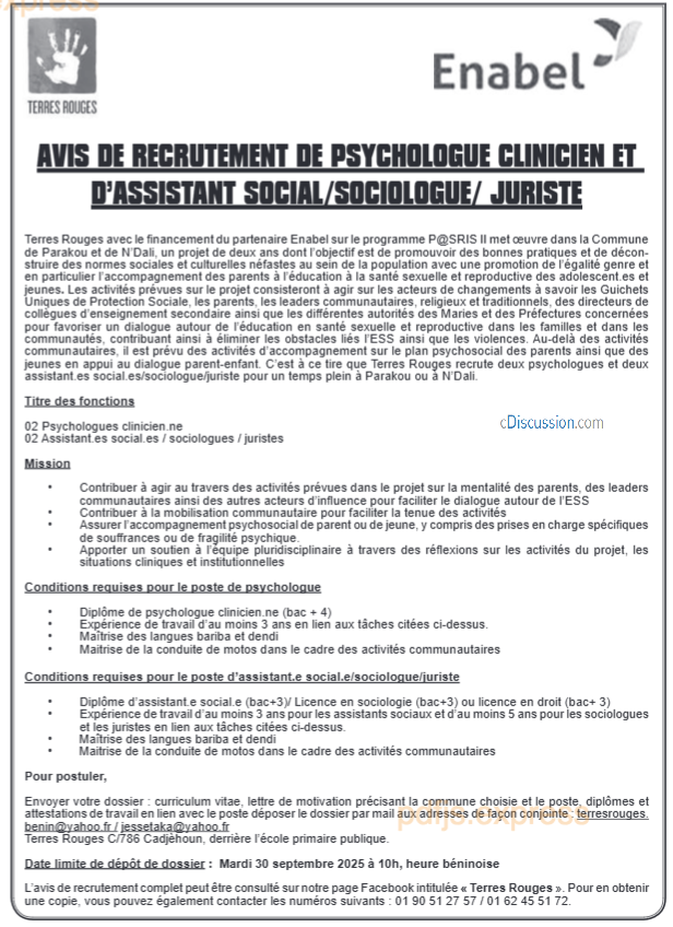 – (02) Assistant(es) Social/Sociologues/Juristes