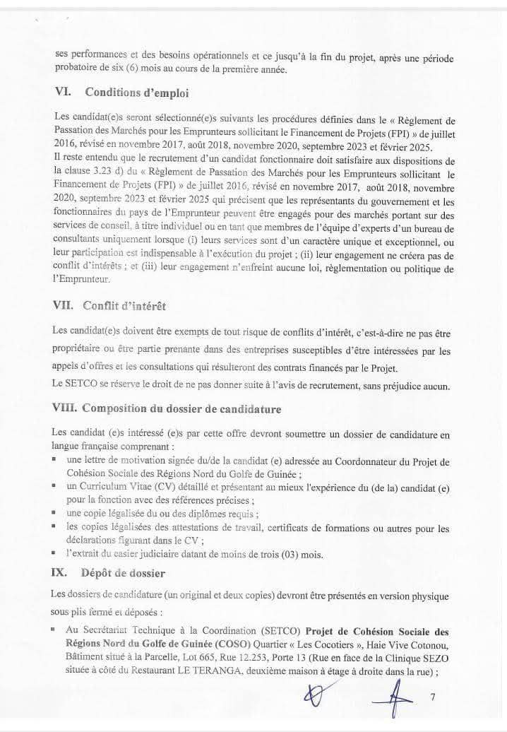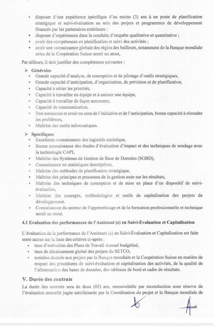 AVIS D'APPEL À CANDIDATURE POUR LE RECRUTEMENT DE PERSONNEL POUR LE COMPTE DU SECRETARIAT TECHNIQUE A LA COORDINATION DU PROJET DE COHESION SOCIALE (SETCO)-COSO/PAIE