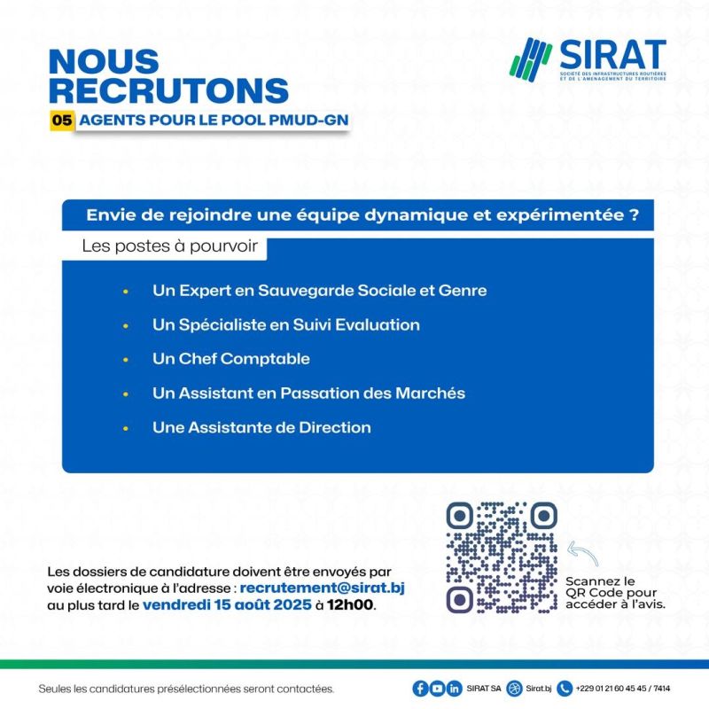 Recrutement d'un Expert en Sauvegarde Sociale et Genre
