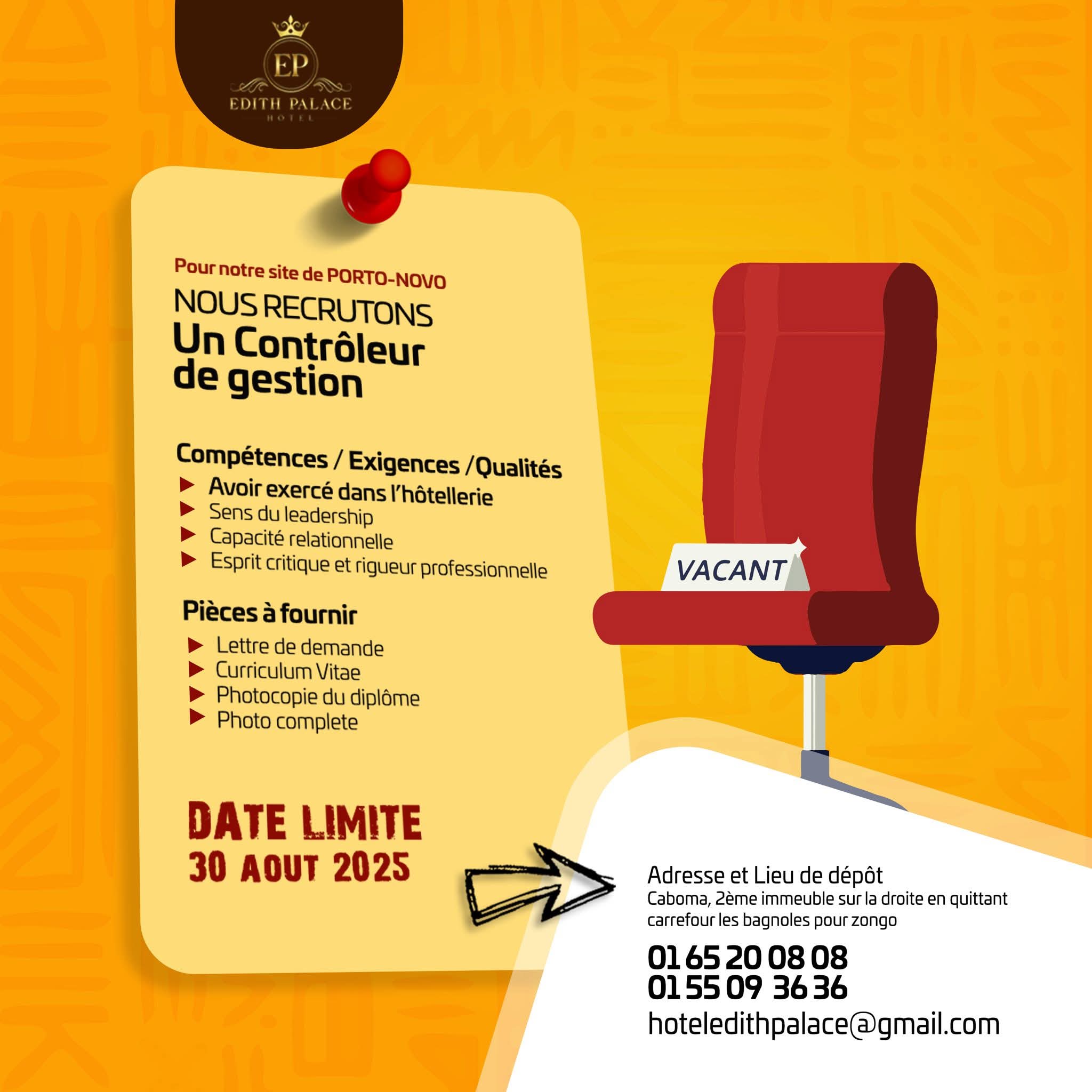 👉 Postulez au poste de Manager Hôtelier ou de Contrôleur au plus tard le 30 Août 2025.
