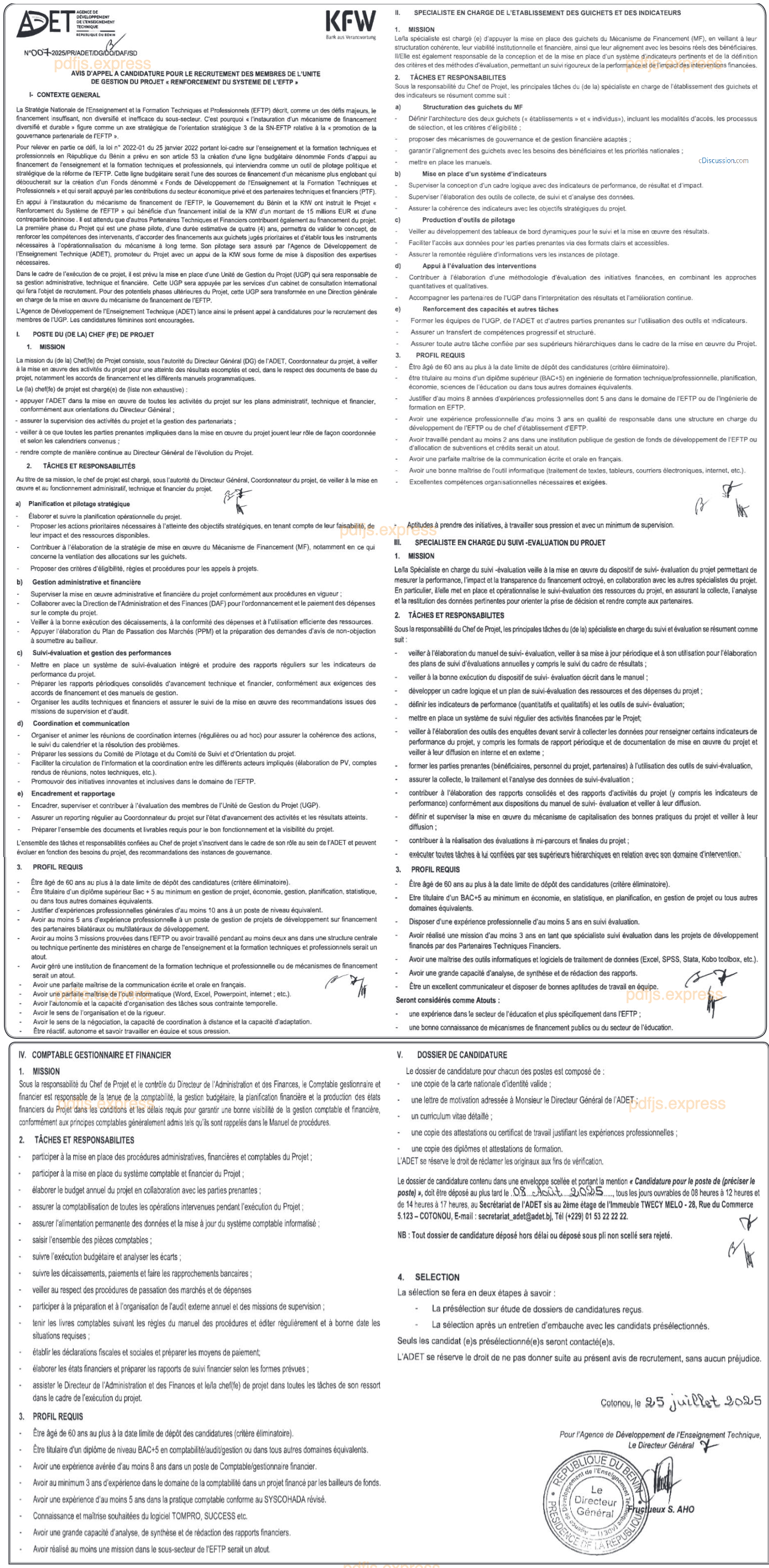 Recrutement d'un Spécialiste en charge du suivi-évaluation du projet