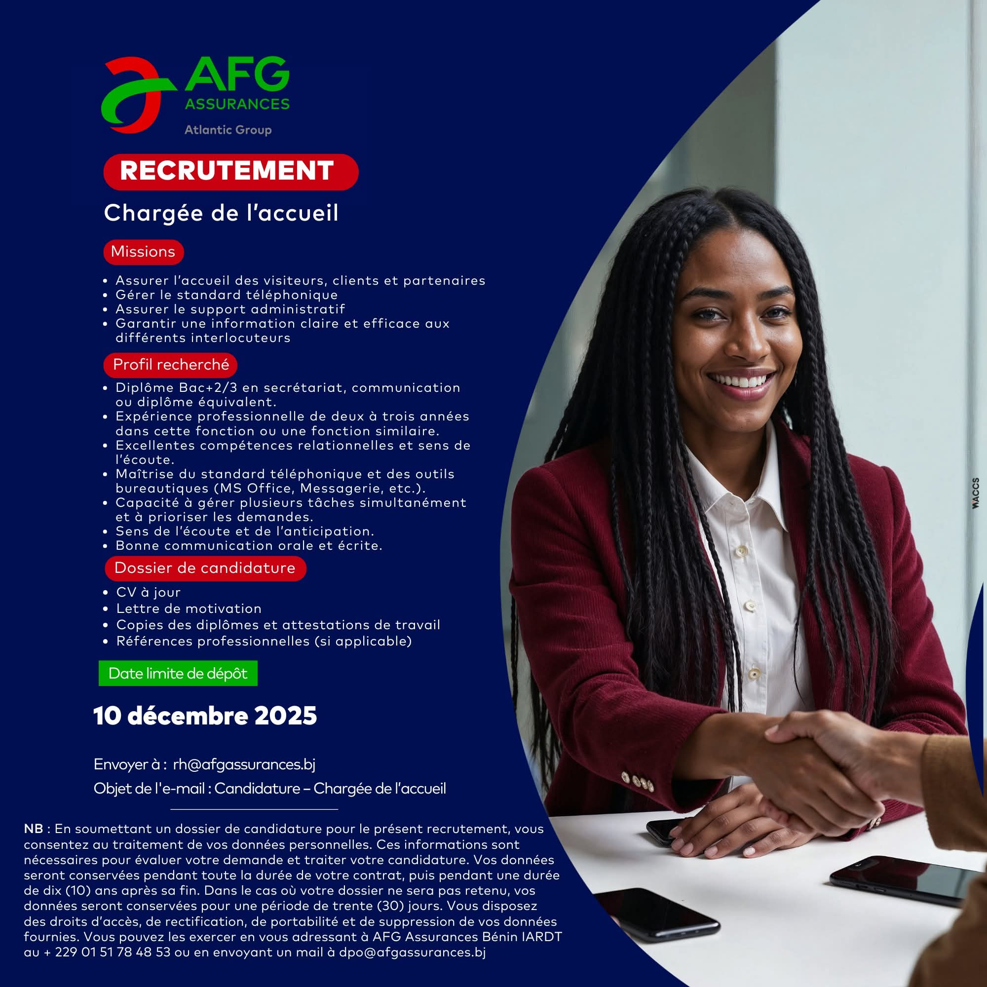 AFG Assurances recrute une chargée de l'accueil