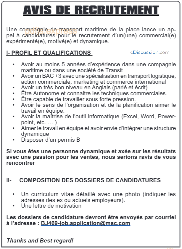 Poste: (01) Commercial(e)