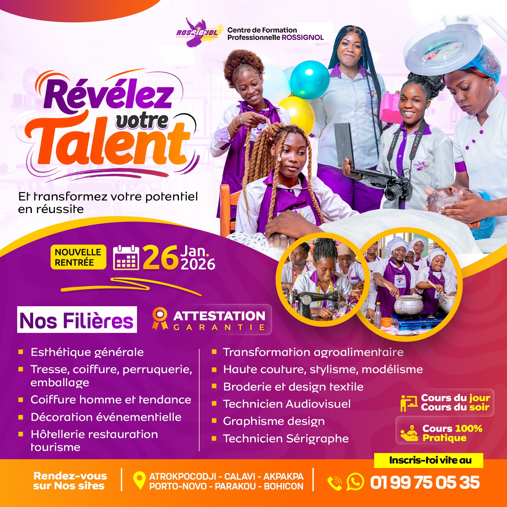 📍 Centres : Godomey – Calavi – Akpakpa – Porto-Novo – Parakou – Bohicon